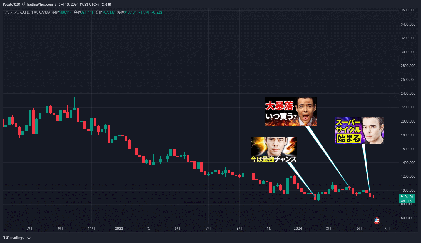 | パラジウム | 検証中 | 2024/2/8 889.629 | 2024/4/9 1094.684 23.05% | 2024/2/9 858.982 -3.44% |