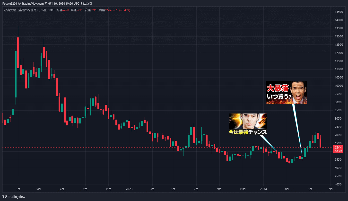 | 小麦 | 検証中 | 2024/2/8 588.4 | 2024/5/28 700.2 19.00% | 2024/3/15 528.4 -10.20% |