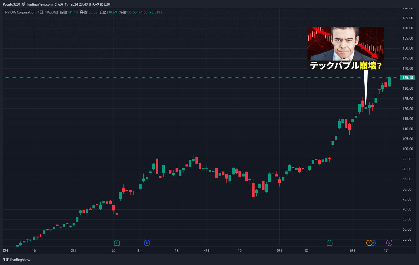 以前のインターネットバブルは実態の無い物でしたが 今のテック株は利益をしっかり出しているので同じにしてはいけないと思います
