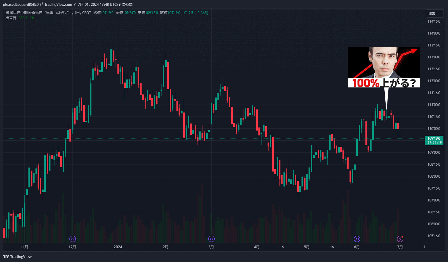 - 実際に債券をチャートで見ると上昇している(MACDも上昇トレンドになっているのでこれから上昇する)