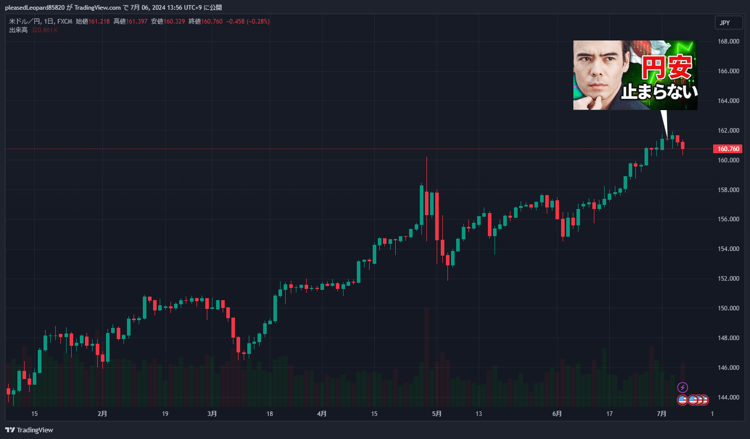 - 円は161.61円で円安がどんどん進んでいてみんな心配している