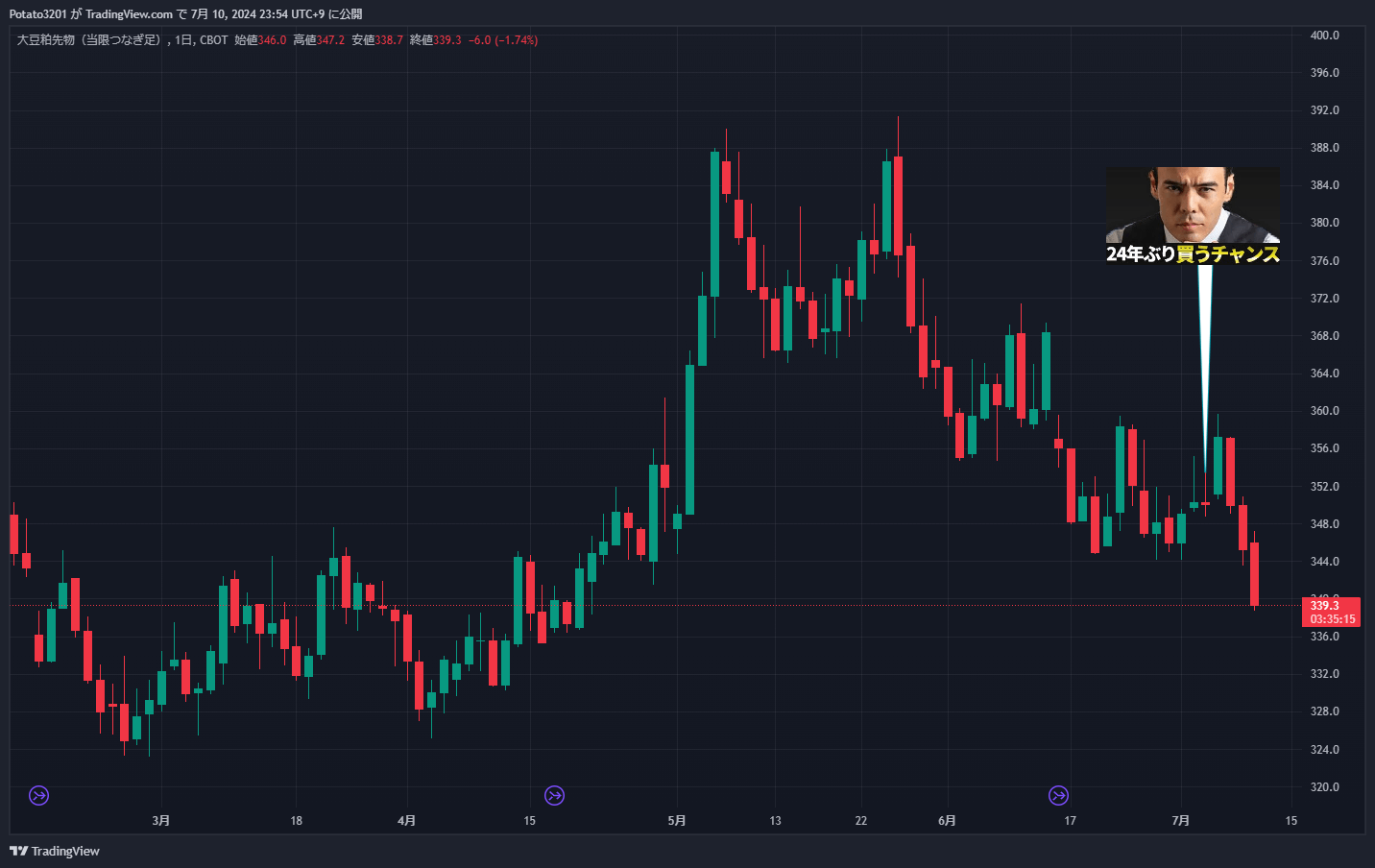 ダンさんには投資を教えていただいて、ダンさんが面白いと言って薦めてくれたコモディティ(当時は銀でした)に投資して驚くほど利益が出ました。 今回も期待してます。私はダンさんのように多くのチャートを把握することも分析し続ける精神力もないため、基本的には長期投資ですが大豆や小麦は短期も視野にいれて買ってみたいと思いました