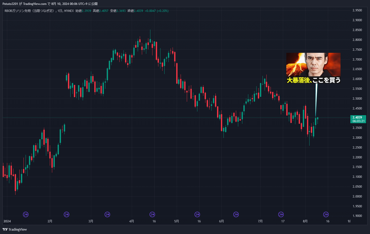 | ガソリン | 検証中 | 2024/8/8 2.3992 | 2024/0/0 0 0.00% | 2024/0/0 0 -0.00% |