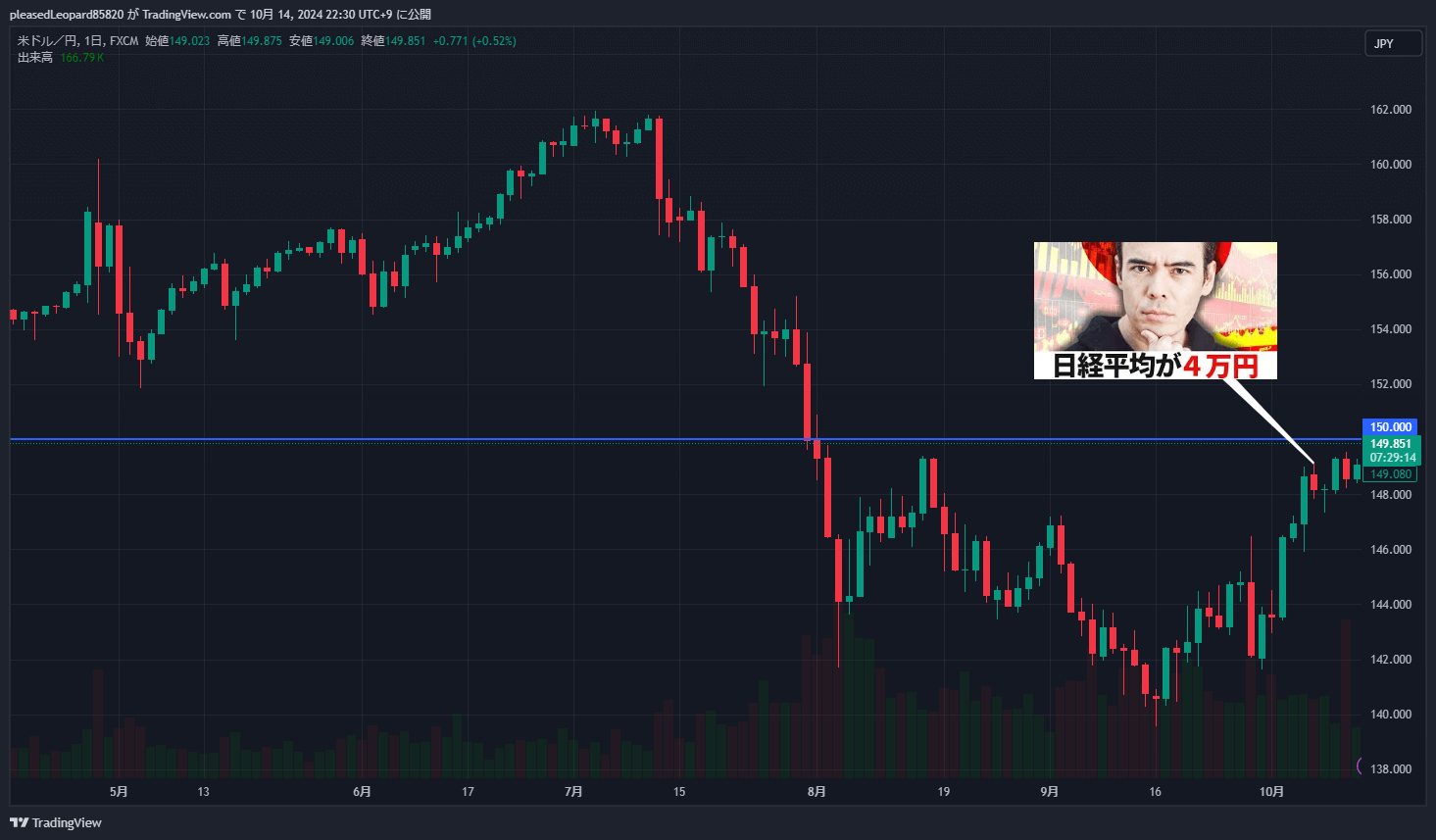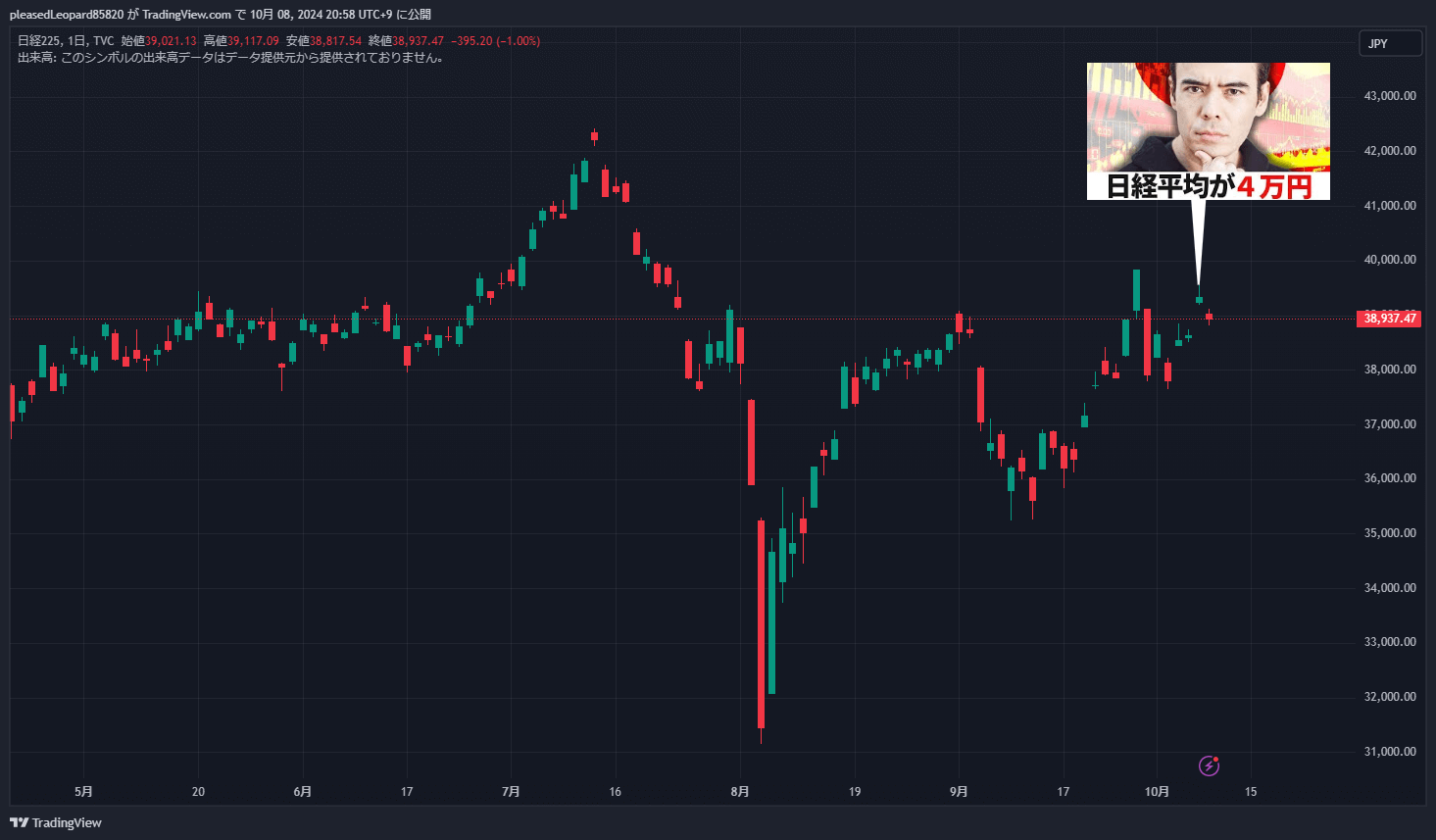 その影響でドル円上昇→日経平均も上昇して10/7の終値は39,332円になっておるんじゃ