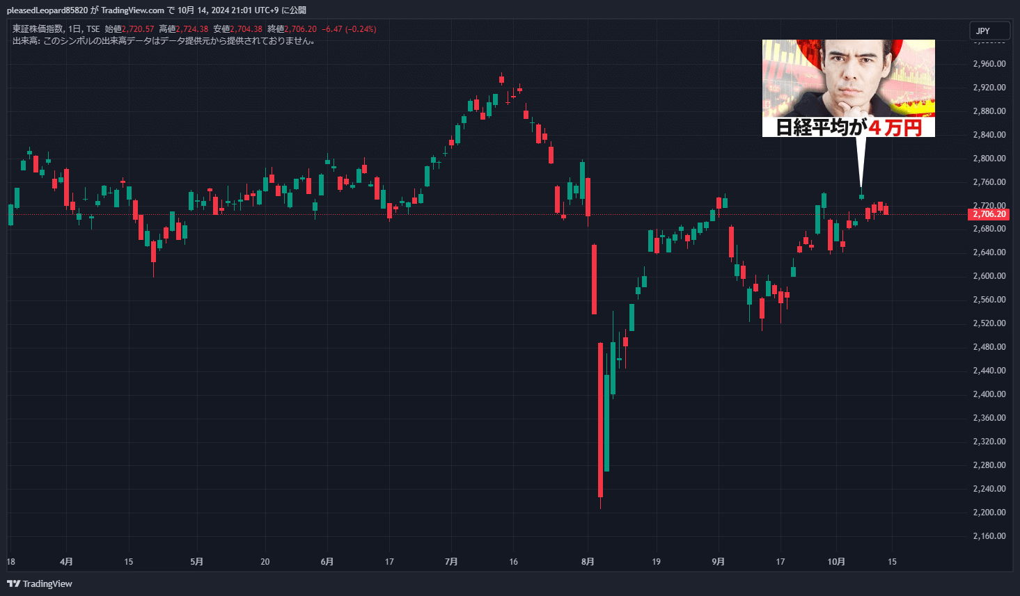 • 投稿日の10/7の終値の2739.39円が今週の最高値で、その後は下落