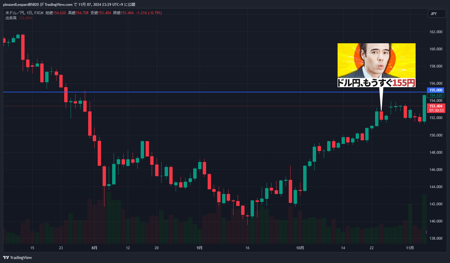 ドル円がもうすぐ155円なの?