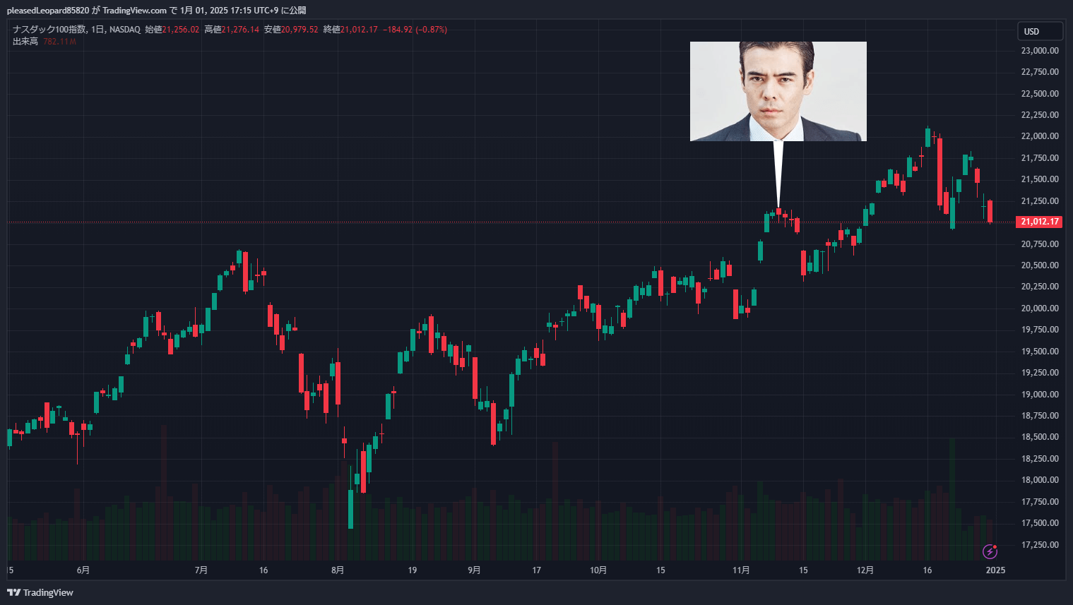 | ナスダック100 | × | 2024/11/8終値から 21117.18 | 2024/12/16 22096.66 4.64% | 2024/11/15 20394.13 -3.42% |
