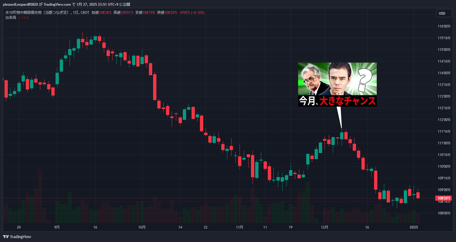 ちょっと前の米国2年債押しからの、今回は10年債?あんたの勧めるIG国内口座だと、オレらは限月喰らうんだよ。分かる?ダンは見てないだろうけど‥‥。スタッフー、頼むよー。笑