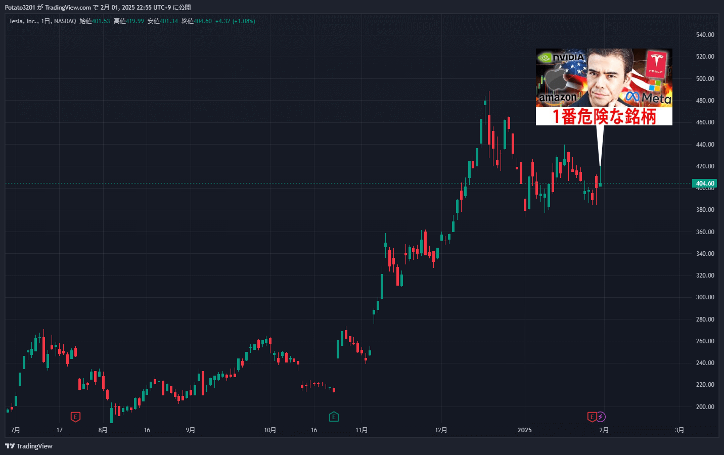 - テスラは危ないと思っている(暴落するとは言っていないが、割高&チャートがあまり良くない)