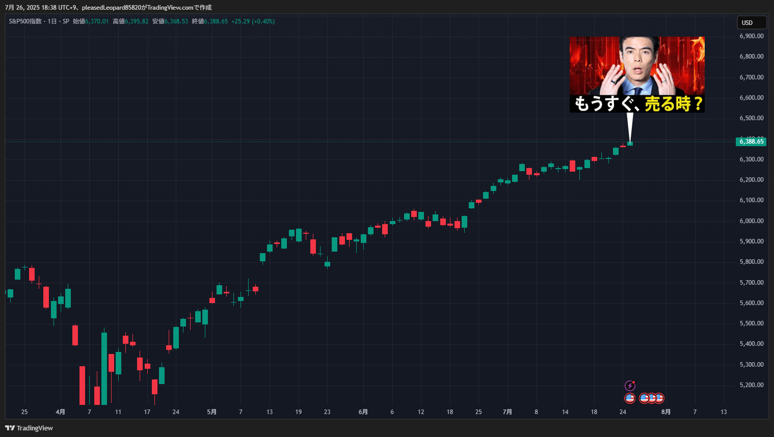 • 米国株は現在下落に恐れることはないが、チャートで大きな陰線が出た場合は下落の始まりかもしれない