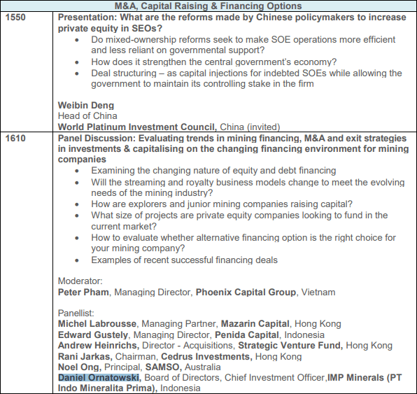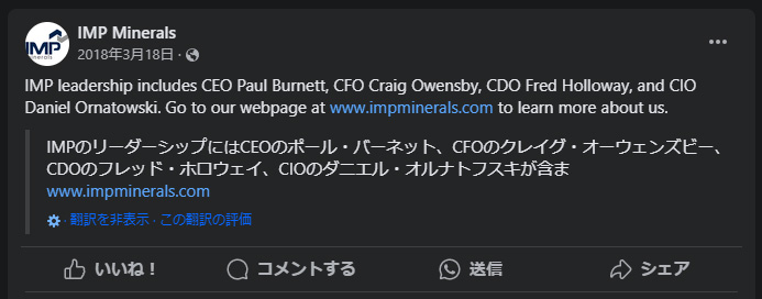 そこにはダンさんの先の経歴で紹介した、シンガポールで開催されたMining Investment Asiaの投稿に対してリポストして↓のように書き込みがあるんじゃ
